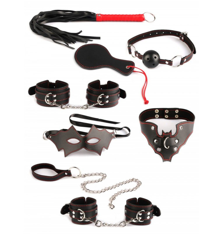 Большой набор БДСМ из 7 предметов в черно-красном исполнении