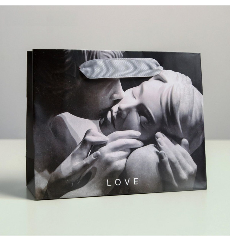 Маленький бумажный подарочный пакет LOVE - 15 х 12 см.