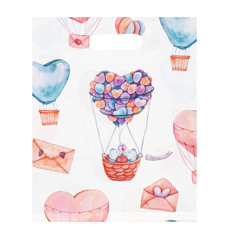 Подарочный пакет с сердечками на воздушном шаре - 31 х 40 см.