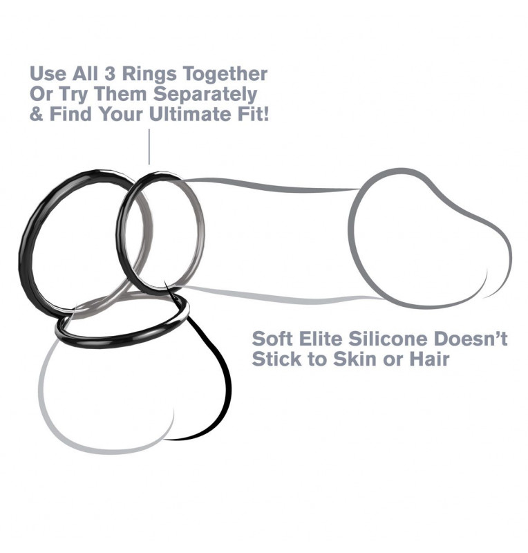 Набор из трех черных эрекционных колец Silicone 3-Ring Stamina Set