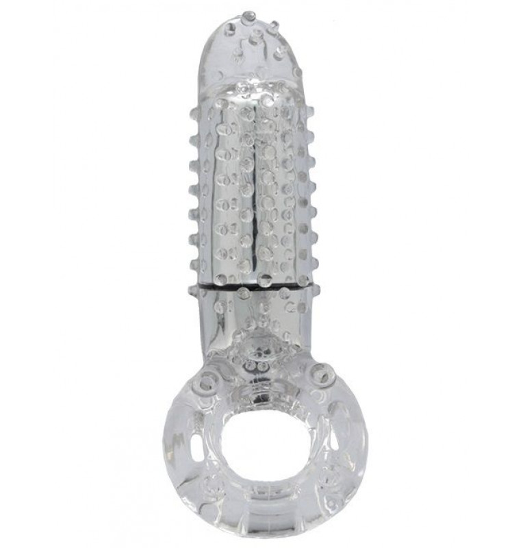 Прозрачное эрекционное кольцо с вибрацией и пальчиком OYEAH CLEAR
