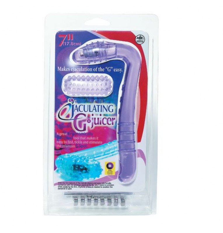 Фиолетовый вибростимулятор G-точки с силиконовой насадкой. Насадка покрыта пупырышками для усиления ощущений. Батарейки в комплекте.