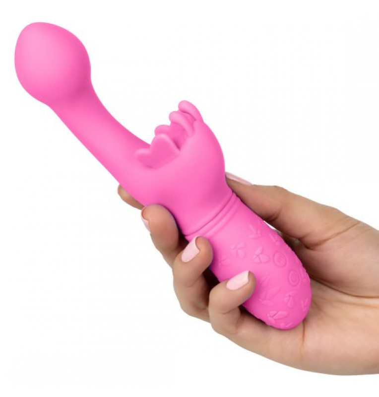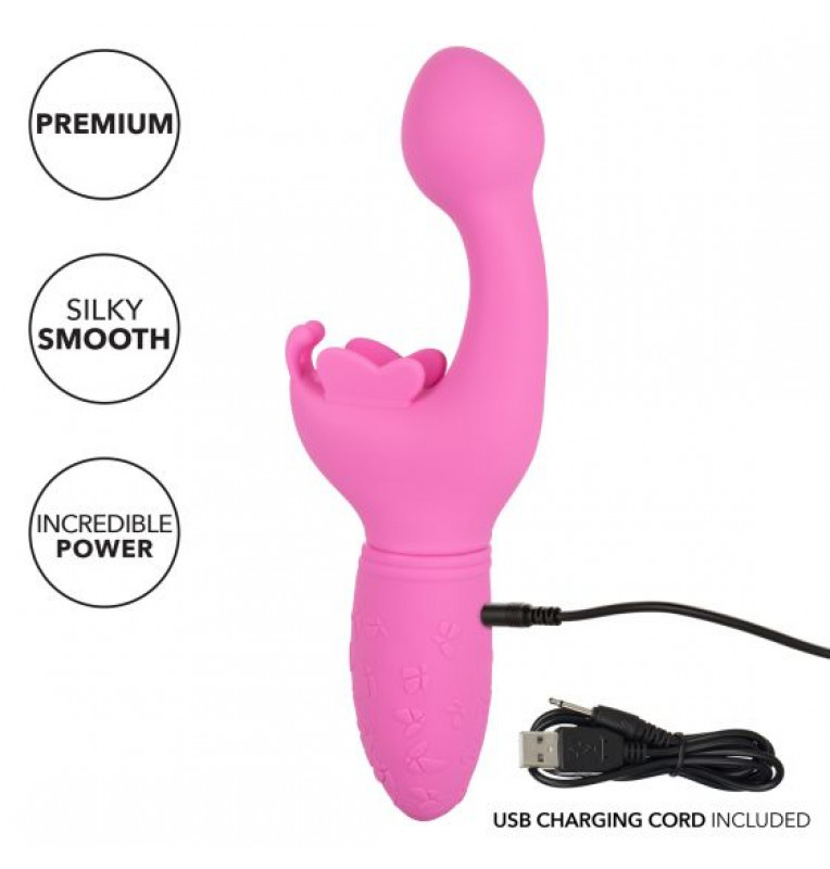 Rechargeable Butterfly Kiss - вибромасссажер кролик. Эта игрушка имеет округлую утолщенную головку и клиторальный отросток в виде бабочек, что делает стимуляцию более яркой. Вибромассажер имеет два мощных двигателя, по одному в каждом отростке, имеющих 10 функций вибрации. Вибромассажер заряжается через USB и может быть подключен практически в любом месте. Просто подсоедините идущий в комплекте шнур к совместимому порту компьютера или USB-адаптера (приобретается отдельно), а противоположный конец со штекером к игрушке. Полная зарядка занимает 60 минут, ее достаточно для беспрерывной работы от 50 до 75 минут. Рабочая длина - 9 см.