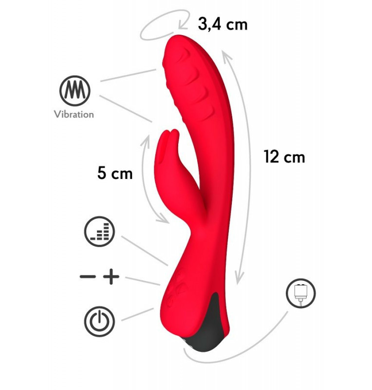 Вибратор-кролик Lepus, пользующийся несомненным успехом у девушек и женщин, выполнен в возбуждающем алом цвете. Талантливо имитируя оральные ласки он дарит наслаждение за наслаждением без пресыщения с помощью встроенного режима оргазма. А рельефный гибкий ствол для внутренней стимуляции длиной 12 см имеет 8 режимов вибрации, которые, несомненного, усилят ощущения! Благодаря магнитной зарядке полностью водонепроницаем. Рабочая длина - 12 см. Время зарядки - 2 часа. Время работы - 2 часа.