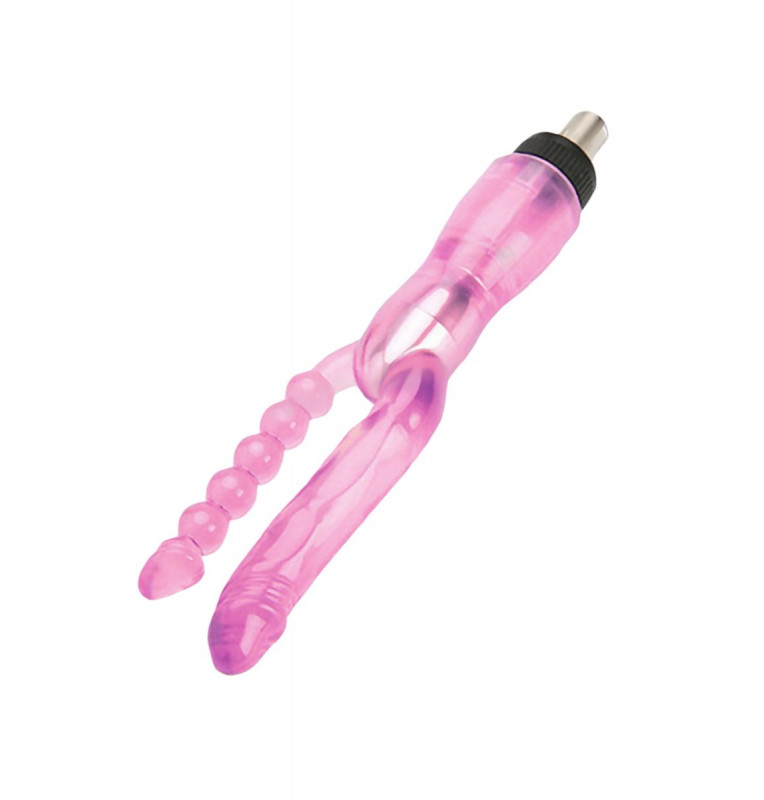 Теперь так любимое многими двойное проникновение возможно и с секс-машиной Machine Gun! Представляем вам новый двойной анально-вагинальный фаллоимитатор из розового силикона. Довольно мягкий и нежный. Легко принимает температуру тела. Длина вагинального отростка - 12,5 см., диаметр - 2,5 см. Длина анального отростка - 11,5 см., диаметр - 1,8 см.