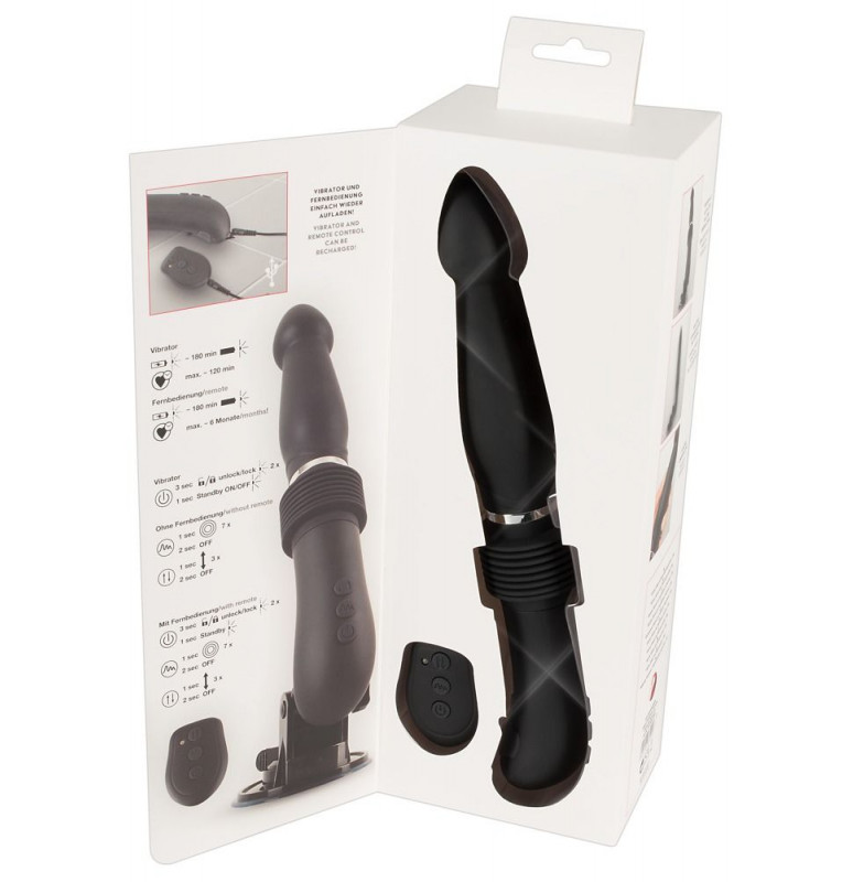 Этот вибратор выделяется своими глубокими толчками на 3 регулируемых скоростях. Это не только скорость и глубина толчков, а так же 7 режимов вибрации (которые можно контролировать отдельно). Мягкая поверхность и форма фоллоимитатора помогают этой машине скользить достаточно глубоко и стимулировать все зоны внутри. Регулируемая и съемная присоска вместе с пультом дистанционного управления делает возможным использование без рук. Дистанционное управление также означает, что партнер может взять управление на себя. Прилагаемый USB-кабель можно использовать для зарядки пульта дистанционного управления и вибратора. Шаг поступательных движений - 6 см. Рабочая длина - 15 см.