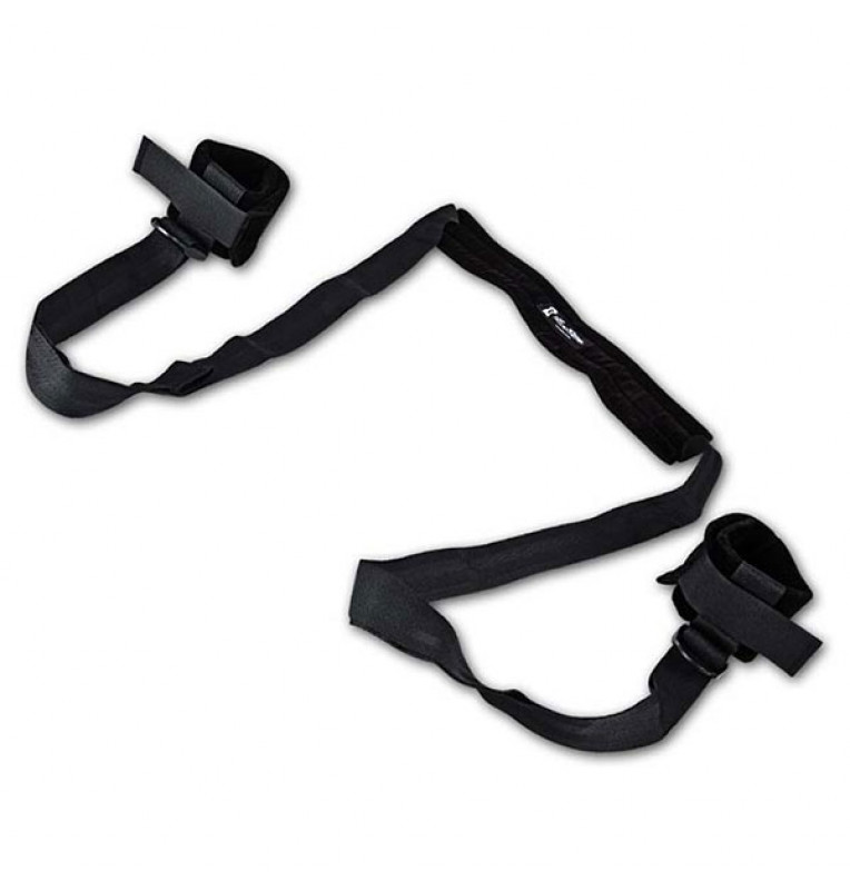 Поддержка для шеи и манжеты для лодыжек черного цвета. Широкая мягкая лента для шеи с регулирующейся длиной строп, к которым крепятся манжеты для ног. С помощью полностью универсальной конструкции можно легко изобретать в постели что-то новенькое!