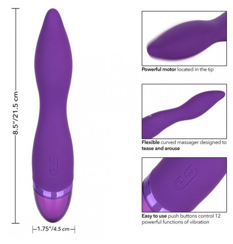 Aura Wand – перезаряжаемый ультра гибкий вибромассажер. Мощный мотор обеспечивает 12 интенсивных функций вибрации, пульсации и эскалации. Вибромассажер изготовлен из гипоаллергенного не имеющего запаха и не содержащего фталатов силикона. Форма в виде лепестка, очень гибкий корпус легко подстраивается под анатомию тела, доставляя удовольствие под любым углом воздействия. Игрушка имеет удобное управление с помощью easy-touch.Вибромассажер заряжается через USB и может быть подключен практически в любом месте, просто подсоедините идущий в комплекте шнур к совместимому порту компьютера или USB-адаптера (приобретается отдельно), а противоположный конец со штекером к игрушке. Время зарядки - 1,5 часа. Время работы - 3 часа.