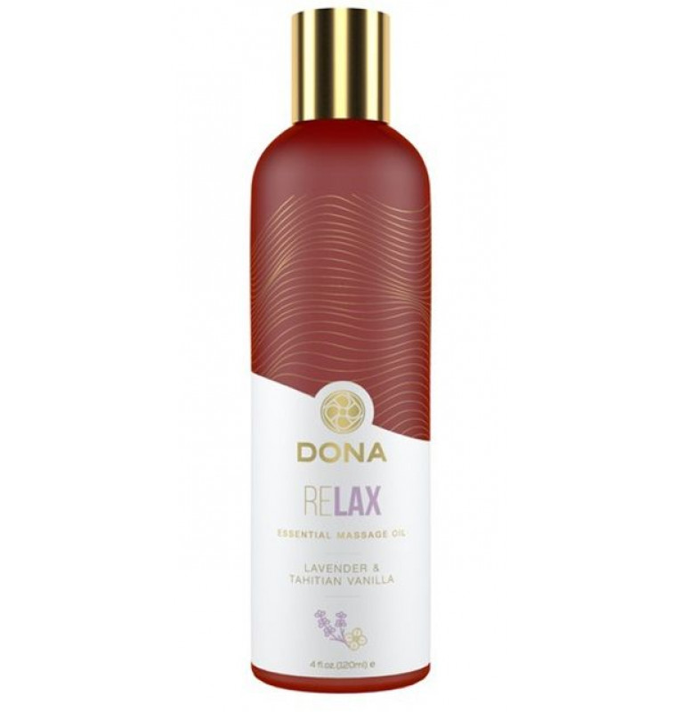 DONA Essential Massage Oil Lavender Tahitian Vanilla – эфирное масло для массажа на натуральной растительной основе с ярко выраженным ароматом лаванды и титянской ванили. Благодаря тщательно продуманной формуле масло обеспечивает длительное гладкое скольжение, позволяющее при массаже уберечь кожу от негативного воздействия. Входящие в состав натуральные средства и витамин Е прекрасно увлажняют и питают кожу. Сочетание пьянящей сладости тиянской ванили и классической пряной свежести лаванды наполнит нежностью и спокойствием, улучшит настроение и создаст романтический настрой. Особенный и весьма оригинальный аромат создан для тех, хочет привнести больше чувственных эмоций в свои отношения.