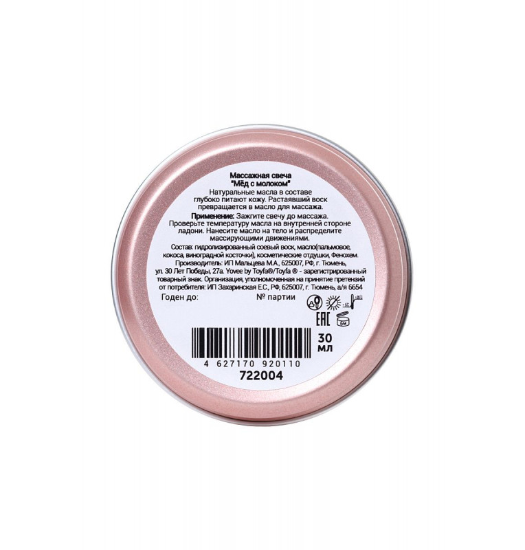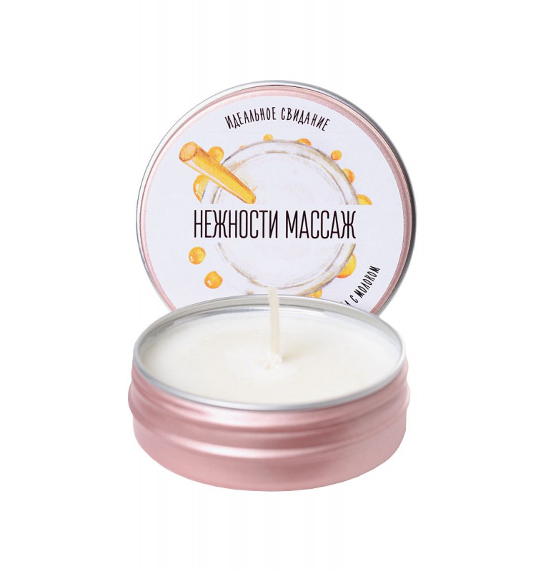 Натуральные масла в составе глубоко питают и увлажняют кожу. Растаявший воск превращается в масло для массажа. Свеча станет идеальным аксессуаром для романтического свидания. Подготовьтесь к свиданию: после приятной и расслабляющей ванны зажгите свечу. Насладитесь нежными ароматами мёда с молоком, которые наполнят в. Предложите партнеру расслабиться в ожидании массажа. Погасите свечу и немного подождите, пока масло остынет. Лейте масло вдоль спины медленно, а затем начните с лёгких массирующих движений. Сделайте массаж своим обнаженным телом — так он станет ещё более интимным и чувственным. Такое свидание останется в памяти надолго!Свеча подарит незабываемые ощущения, после которых вам гарантированы нежные и мягкие прикосновения!
