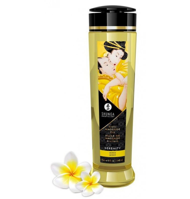 Массажное масло с ароматом моной Serenity. 100% натуральные масла холодного отжима, с витамином Е (антиоксидант), без жирных остатков, не забивает поры, нет минерального или животного масла. Мягкость и шелковистость этого масла с приятным скользящим эффектом на коже вызывает ощущение полного восторга. Сексуальное желание нарастает и вы готовы к любви. Получите взаимное удовольствие от чувственного эротического массажа с использованием нашей эксклюзивной смеси масел холодного отжима, тщательно отобранных за свои стимулирующие и придающие энергию свойства. Масло легко скользит по коже, не оставляя жирных ощущений, в то время как различные экзотические ароматы поднимут ваши чувства до вершин возбуждения. Идеально подходит для того, чтобы насладиться расслабляющим массажем или сделать его, совместив с обволакивающими обольстительными ласками. Это на 100 % натуральное масло с упоительным ароматом, легко скользит по коже, не оставляя жирной пленки. Запах массажному маслу придают эфирные масла и отдушки, что в отличие от большей части другой продукции SHUNGA, ароматизированной вкусовыми добавками, делает его несъедобным.