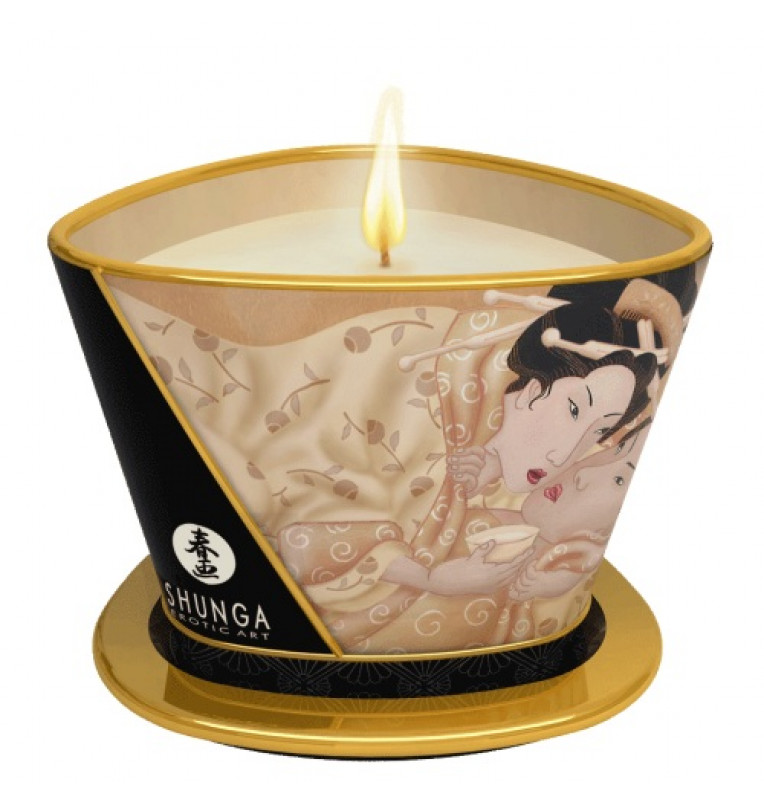 Погасите свет и залейте спальню призрачным светом этой свечи. Вы сразу же заметите, как комната наполнится атмосферой чувственности и пьянящим ароматом ванили. Объятия и поцелуи сменятся чувственным массажем, ведь свеча при горении превращается в масло. Нескольких капелек хватит, чтобы смягчить кожу и обеспечить идеальное скольжение рук. Shunga Massage – дивный аромат, свеча и массажное масло в одной баночке! Ресурс - 40 часов горения.