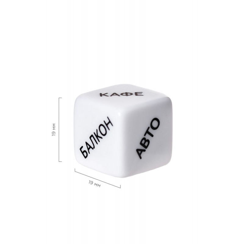 Когда не хватает фантазии для романтического вечера, на помощь придет кубик Место страсти от бренда Штучки-Дрючки. Он даст подсказку, в каком из шести мест вы испытаете невероятное удовольствие. Достаточно поддаться азарту и воле случая, чтобы разнообразить интимную жизнь! Товар будет интересен абсолютно разной аудитории: тем, кто ищет шутливый подарок на особый случай или тем, кто любит дарить пикантные сувениры без повода и просто посмеяться, а также тем покупателям, которые хотят внести разнообразие в свою интимную жизнь. Кубик удобно помещается в руке, выполнен из высококачественного пластика. Доступно и непринужденно, шутя и игриво кубик Место страсти от бренда Штучки-Дрючки продолжает знакомить покупателей с миром новых ярких эмоций и ощущений