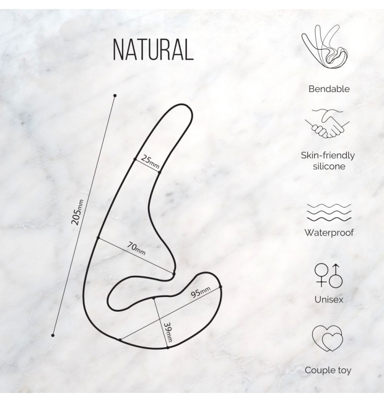Natural Seduction - безремневой страпон. Изготовлен из гипоаллергенного медицинского силикона. Эргономичная форма страпона помогает с легкостью удерживать игрушку мышцами влагалища. Также страпон имеет клиторальный отросток для дополнительной стимуляции активного партнера во время фрикций. Размеры рабочей части специально созданы для анального проникновения. Отсутствие ремней и креплений освобождает и не сковывает бедра! Длина вагинальной пробки - 9,5 см., диаметр - 3,9 см.