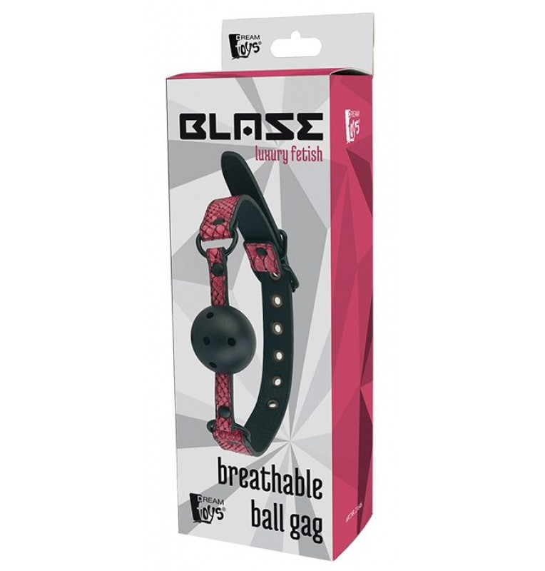 Дышащий кляп с шариком для игры в бондаж. Шарик изготовлен из гладкого пластика и остается удобным благодаря отверстиям. Шейный ремешок под змеиную кожу полностью регулируется с помощью металлической застежки-пряжки.