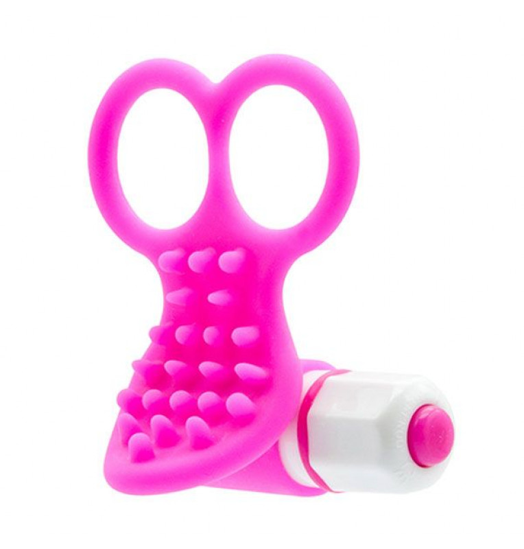 Розовый вибростимулятор с петлями для пальцев SEE YOU FINGERING PINK. Батарейки в комплекте.