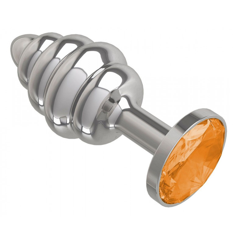 Серебристая пробка с рёбрышками и оранжевым кристаллом - 7 см.
