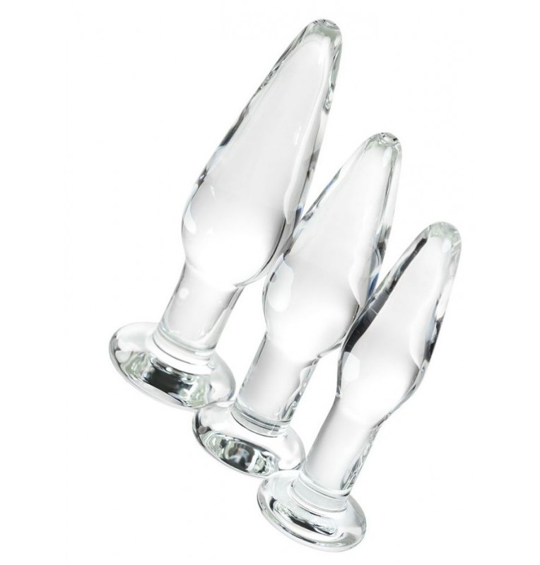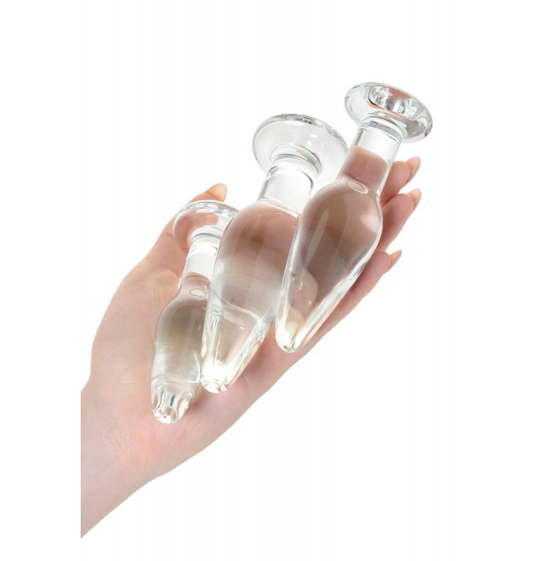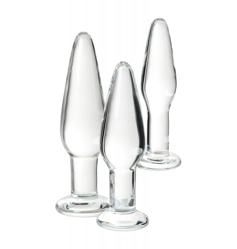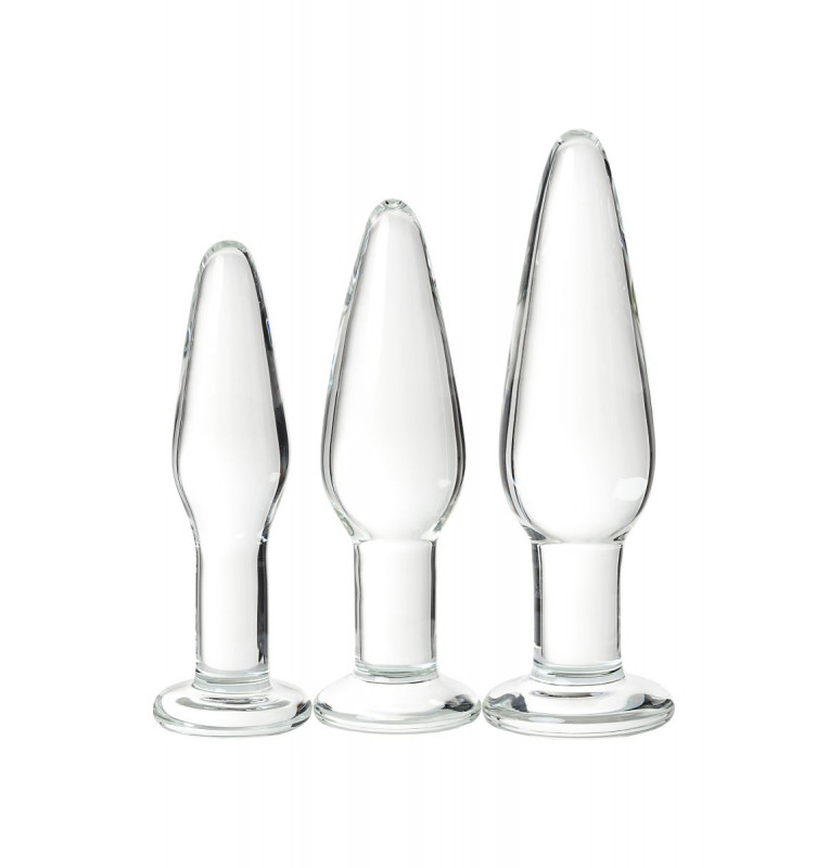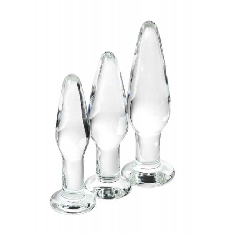 Набор из трех стеклянных анальных пробок с круглым ограничителем Sexus Glass
