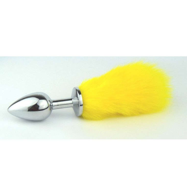 Металлическая анальная пробка с хвостиком лимонного цвета