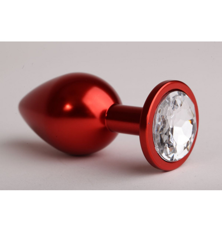 Красная анальная пробка с прозрачным стразом - 8,2 см.