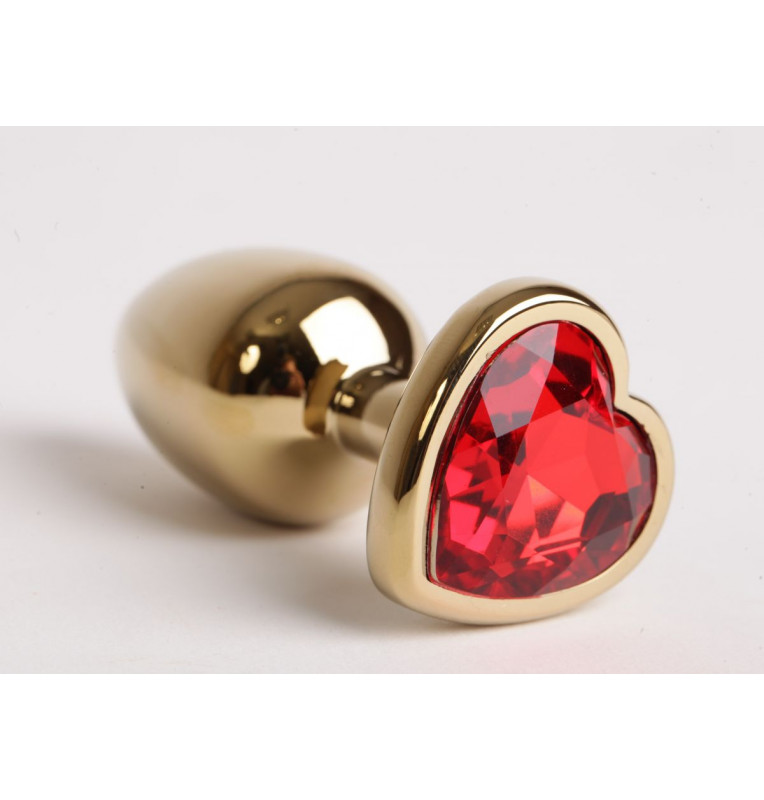 Золотистая анальная пробка с красным стразиком-сердечком - 8 см.