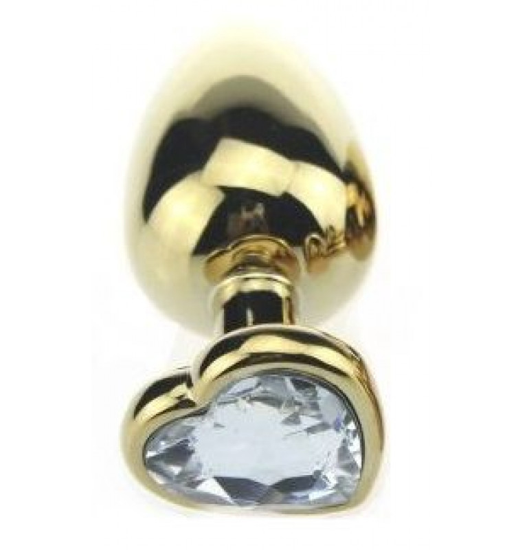 Золотистая пробка с прозрачным кристаллом-сердечком - 7,5 см.