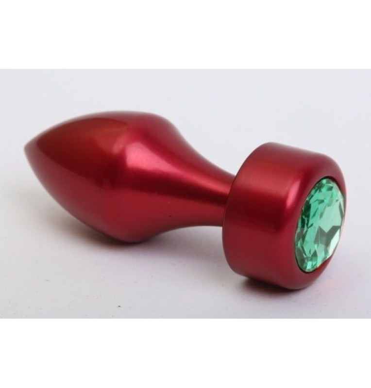 Красная анальная пробка с широким основанием и зелёным кристаллом - 7,8 см.