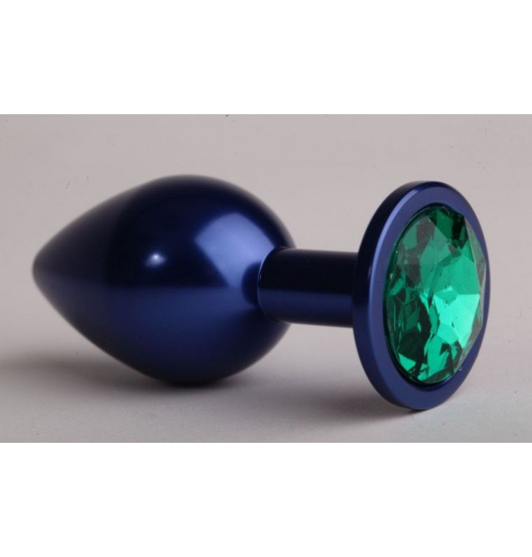 Синяя анальная пробка с зелёным стразом - 7,6 см.