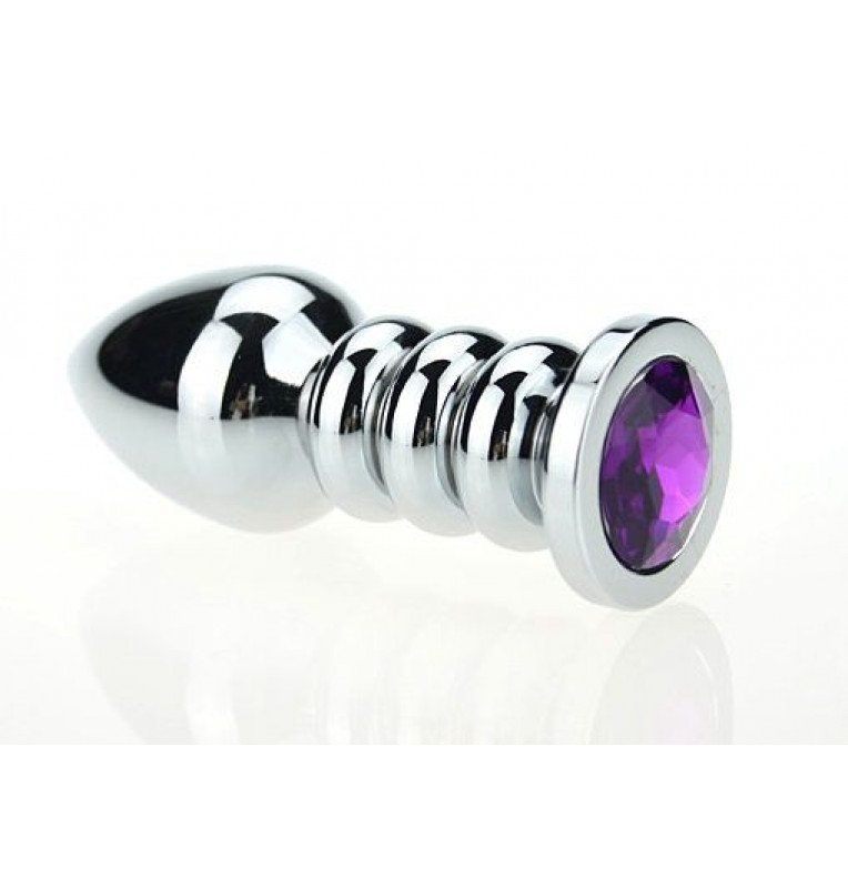 Металлическая анальная пробка с ограничительным основанием для безопасного использования и кристаллом.