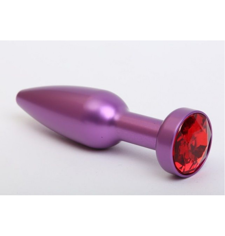 Фиолетовая анальная пробка с красным стразом - 11,2 см.