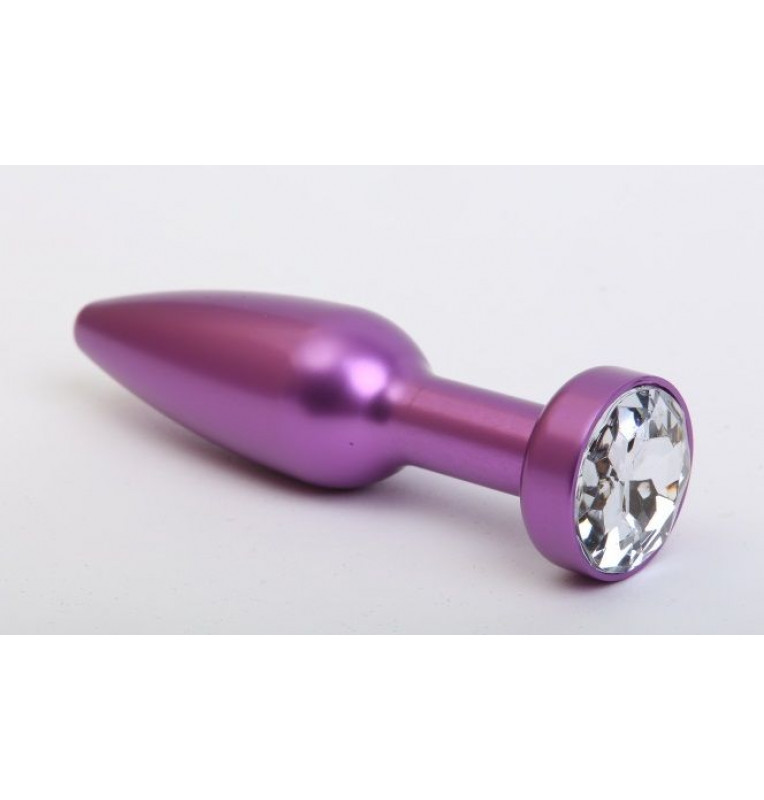 Фиолетовая анальная пробка с прозрачным стразом - 11,2 см.