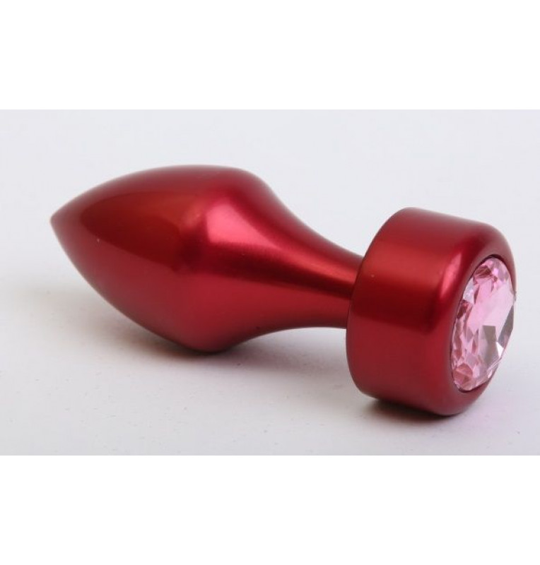 Красная анальная пробка с широким основанием и розовым кристаллом - 7,8 см.