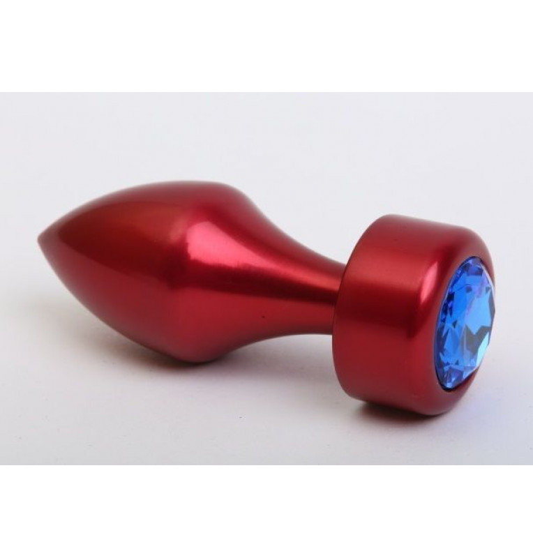 Красная анальная пробка с широким основанием и синим кристаллом - 7,8 см.