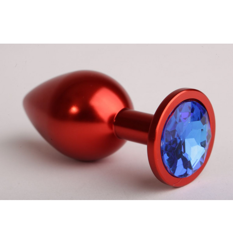 Красная анальная пробка с синим стразом - 7,6 см.