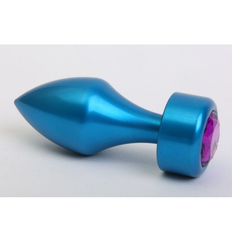 Синяя анальная пробка с фиолетовым стразом - 7,8 см.