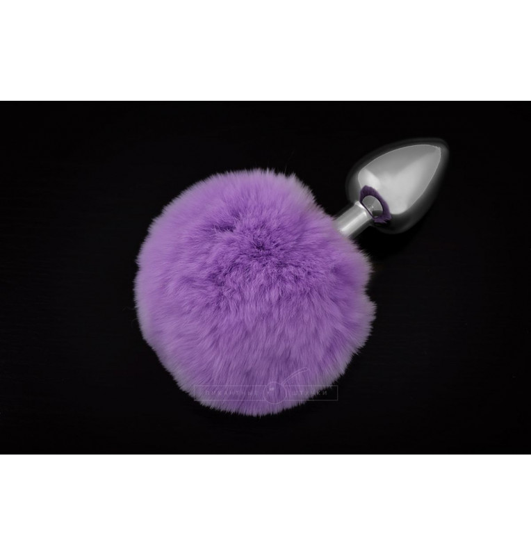 Маленькая серебристая пробка с пушистым фиолетовым хвостиком