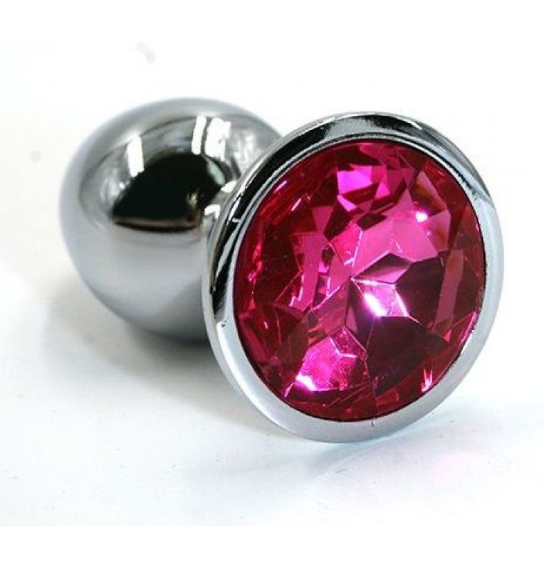 Серебристая алюминиевая анальная пробка с ярко-розовым кристаллом - 6 см.