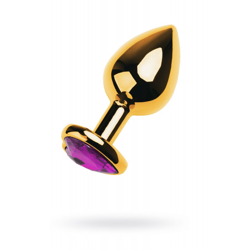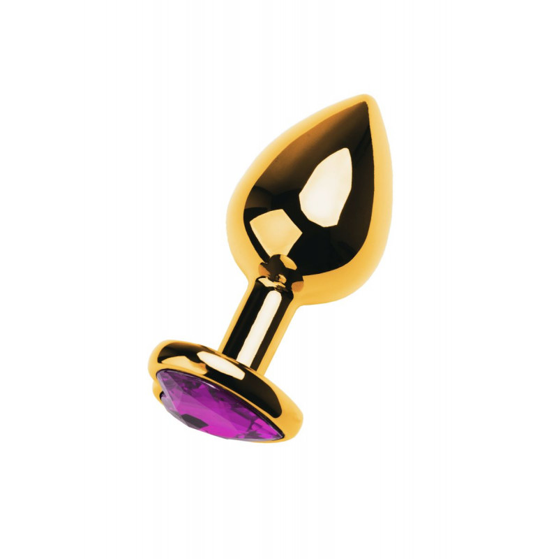 Золотистый анальный плаг с фиолетовым кристаллом-сердцем - 8 см.