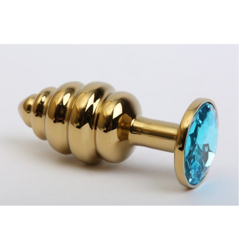 Золотистая рифлёная пробка с голубым стразом - 8,2 см.