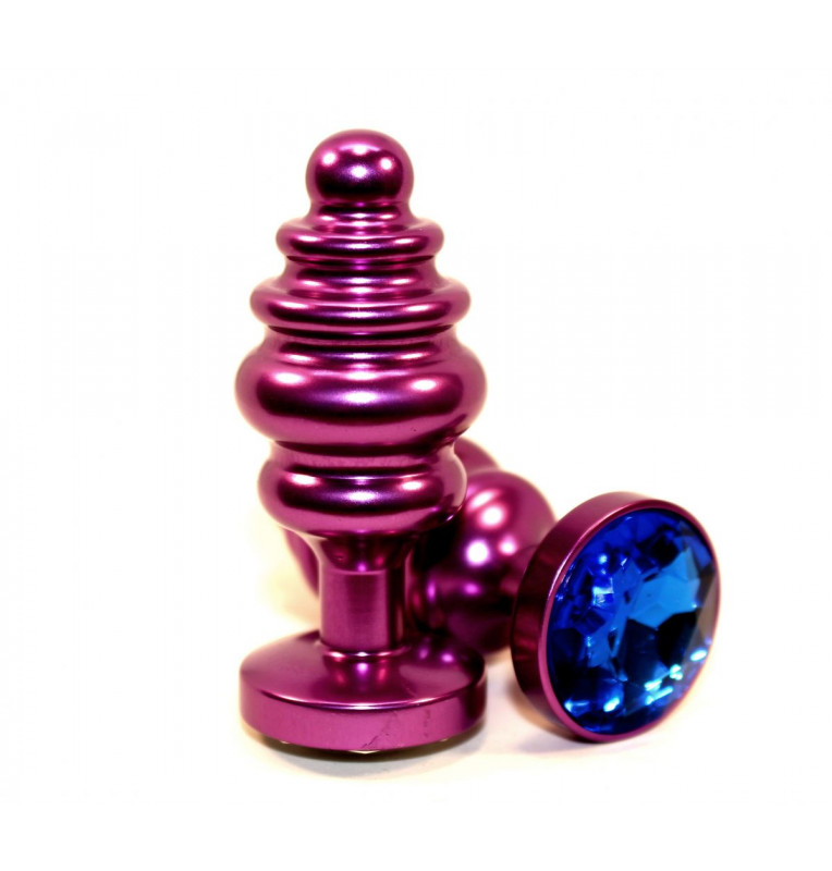 Фиолетовая рифленая пробка с синим кристаллом - 7,3 см.