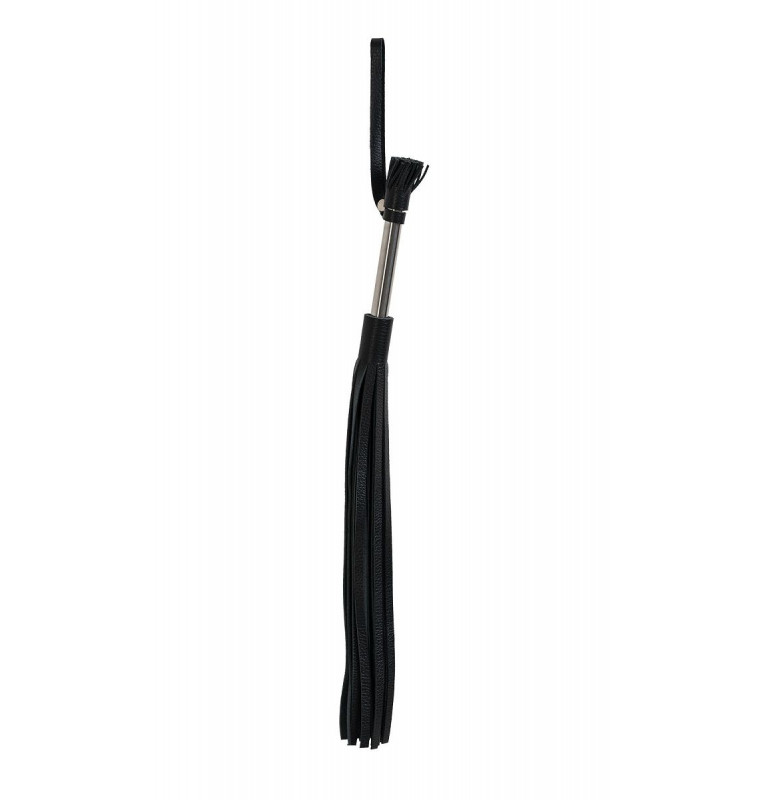 Аккуратная черная плеть из натуральной кожи с ручкой из медицинской стали, украшенная декоративной кисточкой. Имеется петля для удобного использования девайса. Длина хвостов - 34 см.