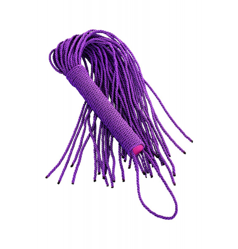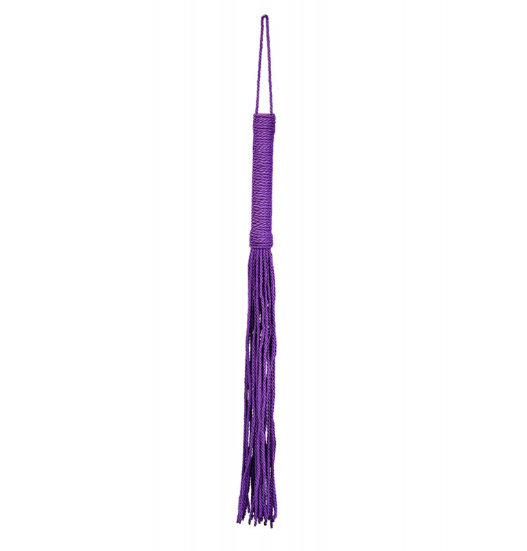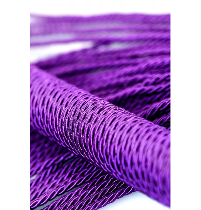 Сиреневый веревочный флоггер с плетеной ручкой мягко разогревает кожу и готовит к более серьезным воздействиям. Длина ручки - 15,5 см. Длина хвоста - 33 см.