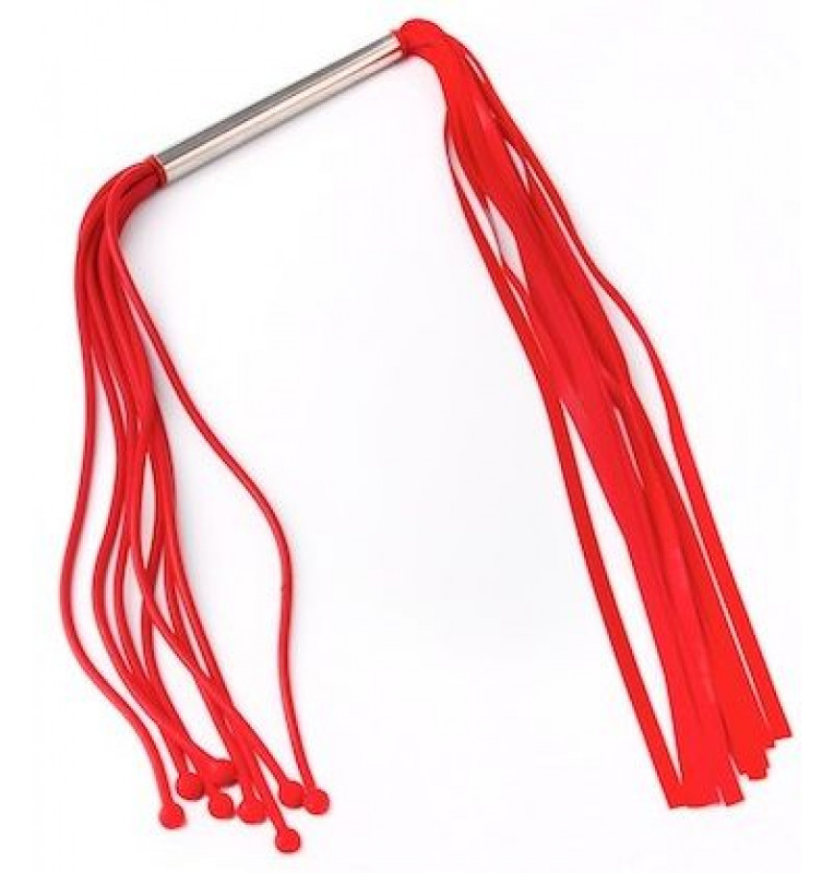 Плеть двухсторонняя изготовлена из натурального гипоаллергенного латекса, имеет 8-9 хвостов. С одной стороны кончики хвостов усилены шариками для увеличения ударного эффекта, а с другой хвосты ленточные - более мягкий удар. Ручка металлическая, хромированная. Длина ручки - 14 см. Длина хвостов с каждой стороны - 35-40 см.