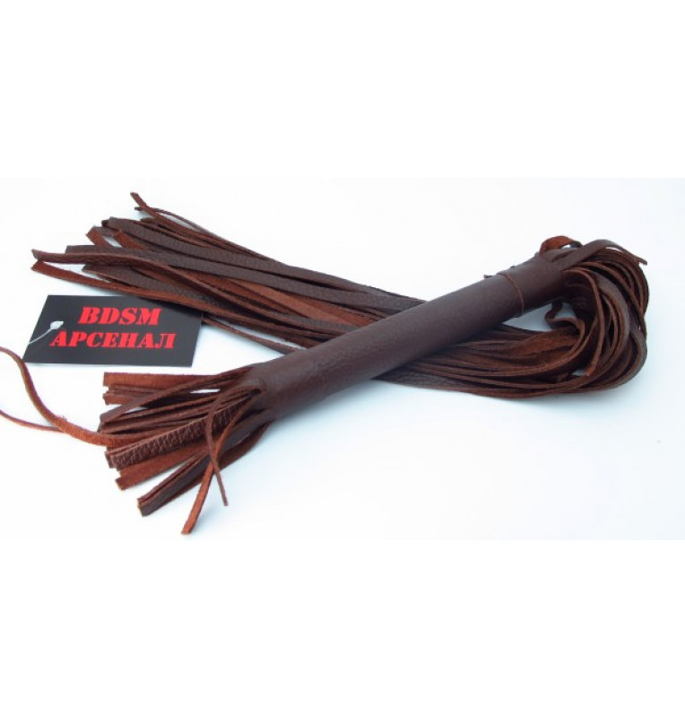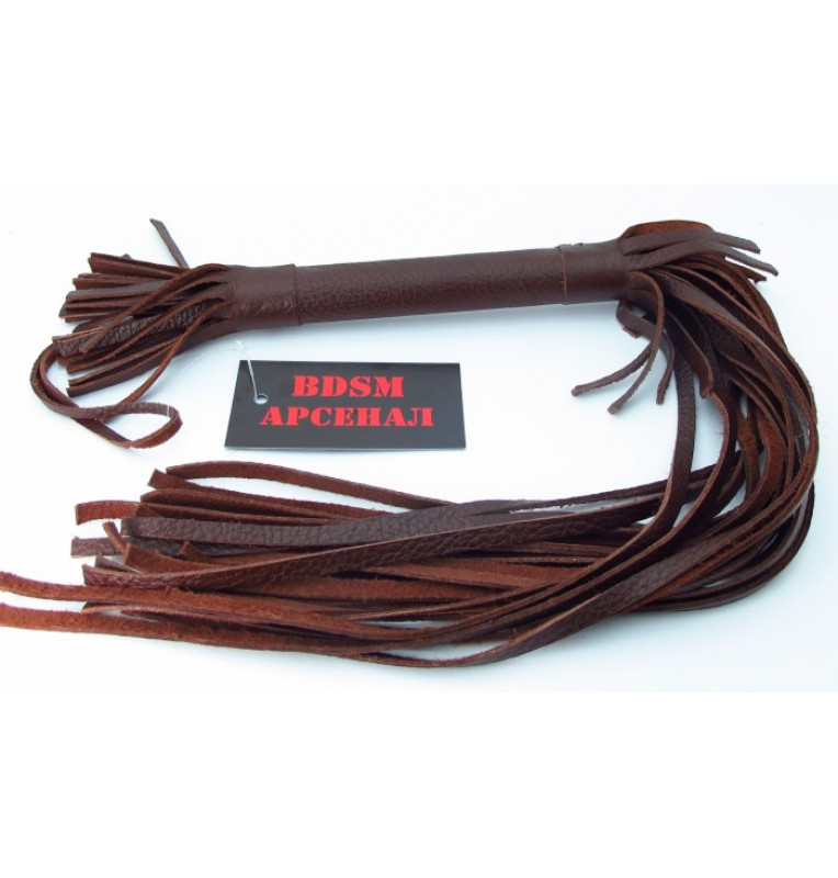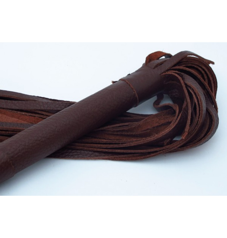 Аккуратная плетка коричневого цвета, изготовленная из натуральной кожи. Имеет жесткую ручку, также покрытую кожей. Имеется петля для удобного использования плети. Длина хлыстов - 39 см.