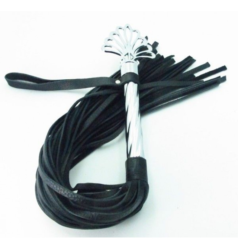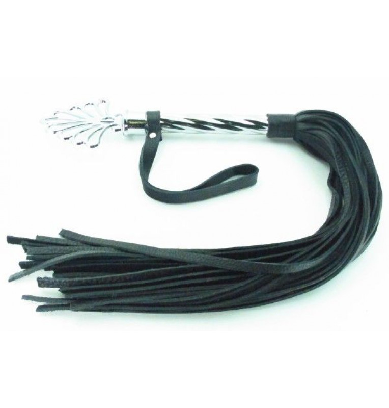 Длинная плеть с рукоятью цвета никель - 66 см.
