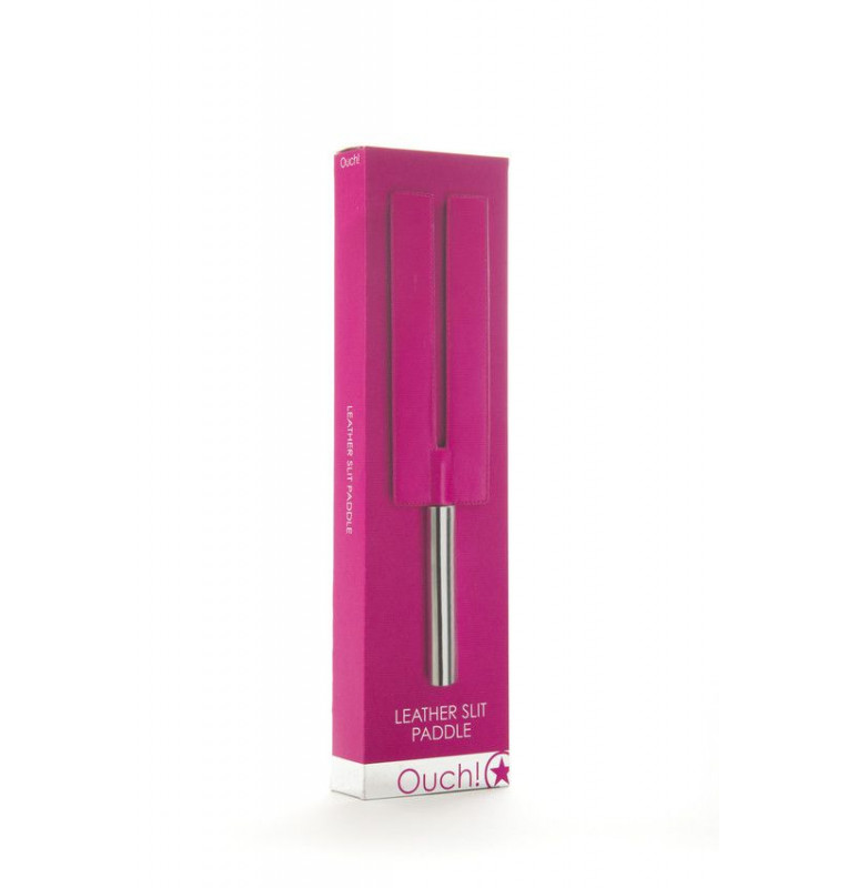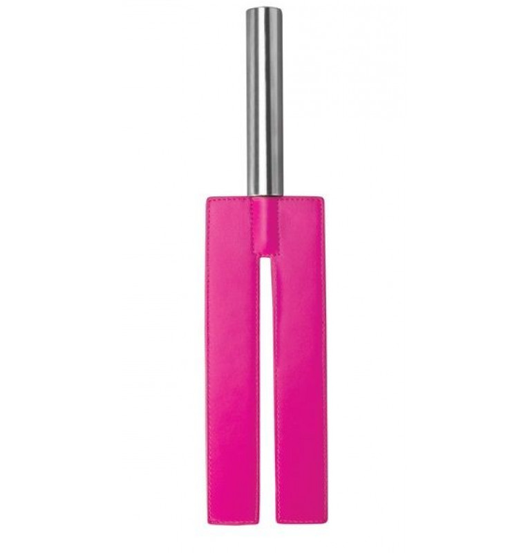 Розовая П-образная шлёпалка Leather Slit Paddle - 35 см.