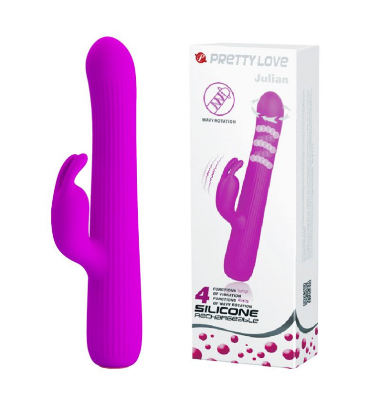 Лиловый вибромассажер Julian с волновой ротацией - 17,8 см.