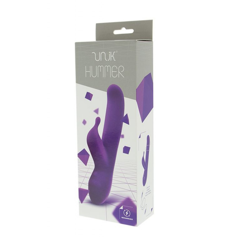 Фиолетовый вибратор с клиторальным стимулятором UNIK HUMMER. Перезаряжаемый. Водонепроницаемый. 7 режимов вибрации и 3 режима ротации.