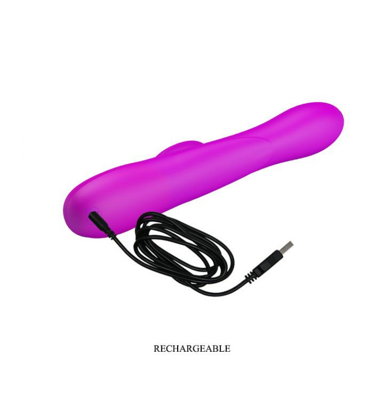 Многоскоростной перезаряжаемый вибратор лилового цвета. Имеет клиторальный стимулятор. Рельефная поверхность с функцией надувания головки. Материал - силикон. Имеет 7 режимов вибрации, управление производится при помощи сенсорных кнопок у основания игрушки. Рабочая длина - 13,5 см.