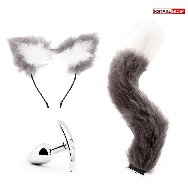Игровой набор в сером цвете: ободок-ушки, анальная пробка, хвостик
